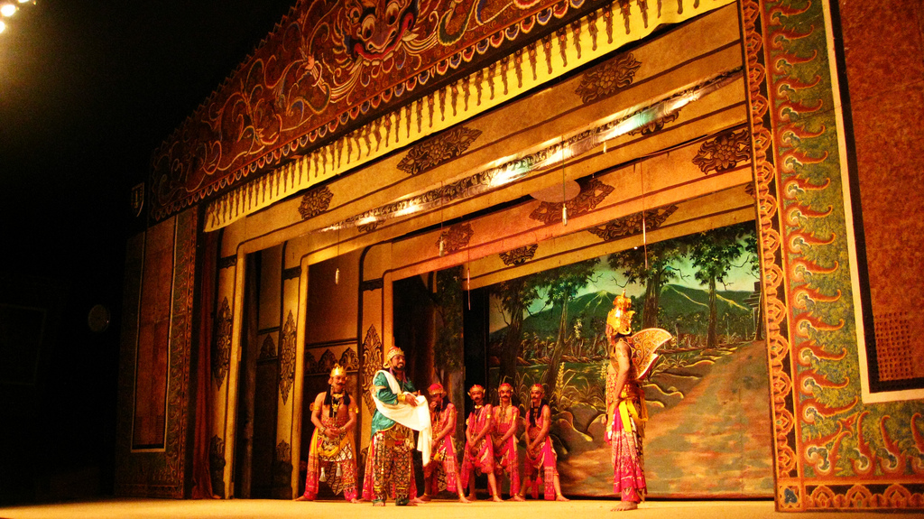 Di gedung itu sedang berlangsung pertunjukan Wayang Orang. Sebelumnya aku memang pernah melihat wayang, tetapi hanya sebuah gambar yang dipajang pada dinding. Gambar wayang yang dibuat di atas kulit binatang.